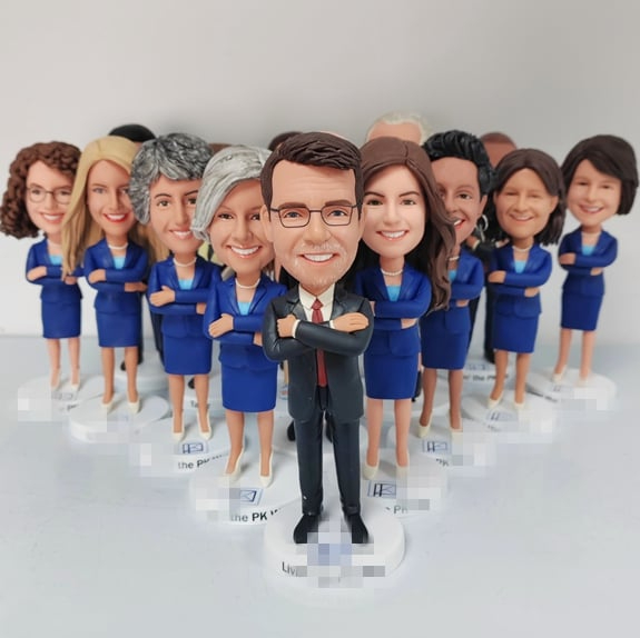 - Custom Bobbleheads given to corporate employees or clients.